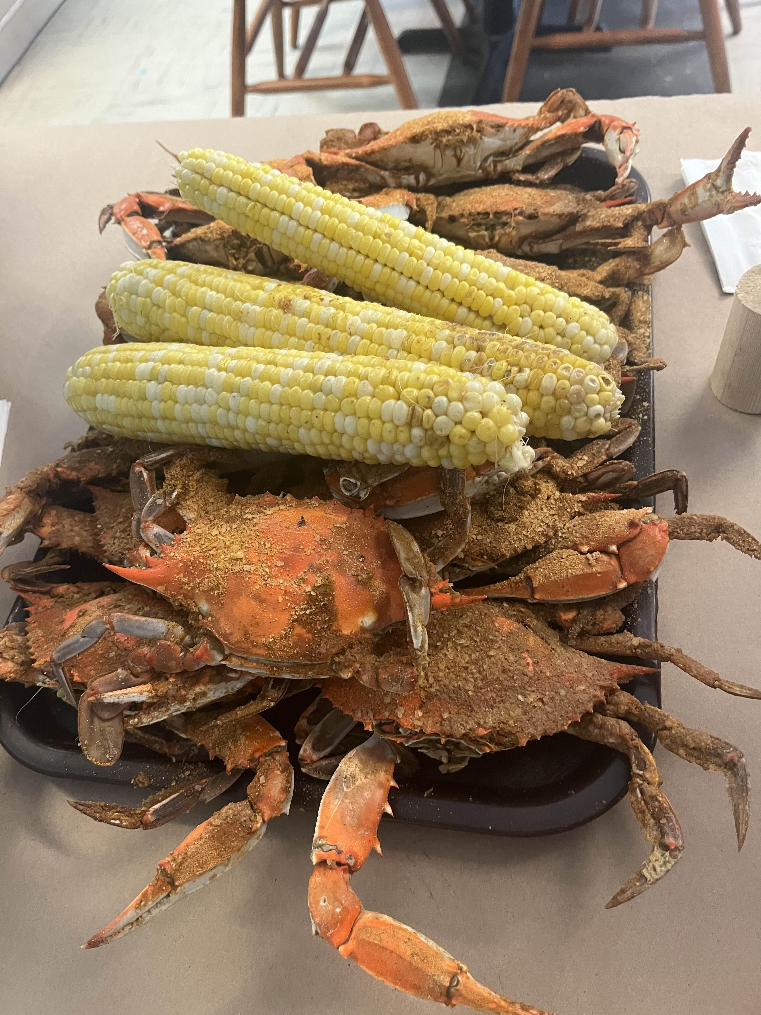 크.. 정말 정말 정말 맛있었다. 꽉 찬 살은 탱글탱글 촉촉하였으며 게살 특유의 고소한 풍미가 찌~인하게 느껴졌다. 평소 던지니스 크랩과 스노우 크랩을 자주 사 먹는데, 블루크랩의 맛을 알고 나니 그동안 맛있다며 먹어왔던 다른 게들의 맛이 싱겁게만 느껴졌다. 게다가 사이드로 주문한 옥수수도 보기와는 달리 너무 맛있었다. 옥수수 좋아하는 남편은 맛있다며 계속 감탄을 하며 먹었다. 운전 중에 도로 양쪽에 옥수수밭이 펼쳐져 있길래 여긴 중서부도 아닌데 왜 하필 옥수수를 심었을까 이런 얘기를 남편과 했었는데, 이 옥수수도 지역 특산물이었구나 싶었다.