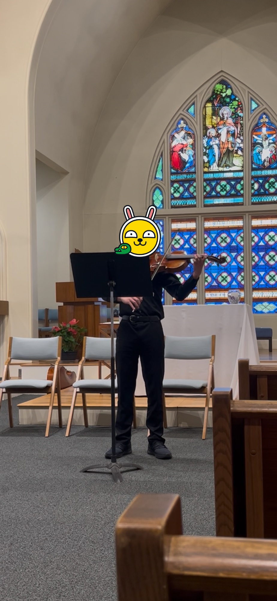 장소는 동네 성당. 자신의 순서가 되어 아들아이는 난생처음으로 청중 앞에서 연주를 시작하였다.
