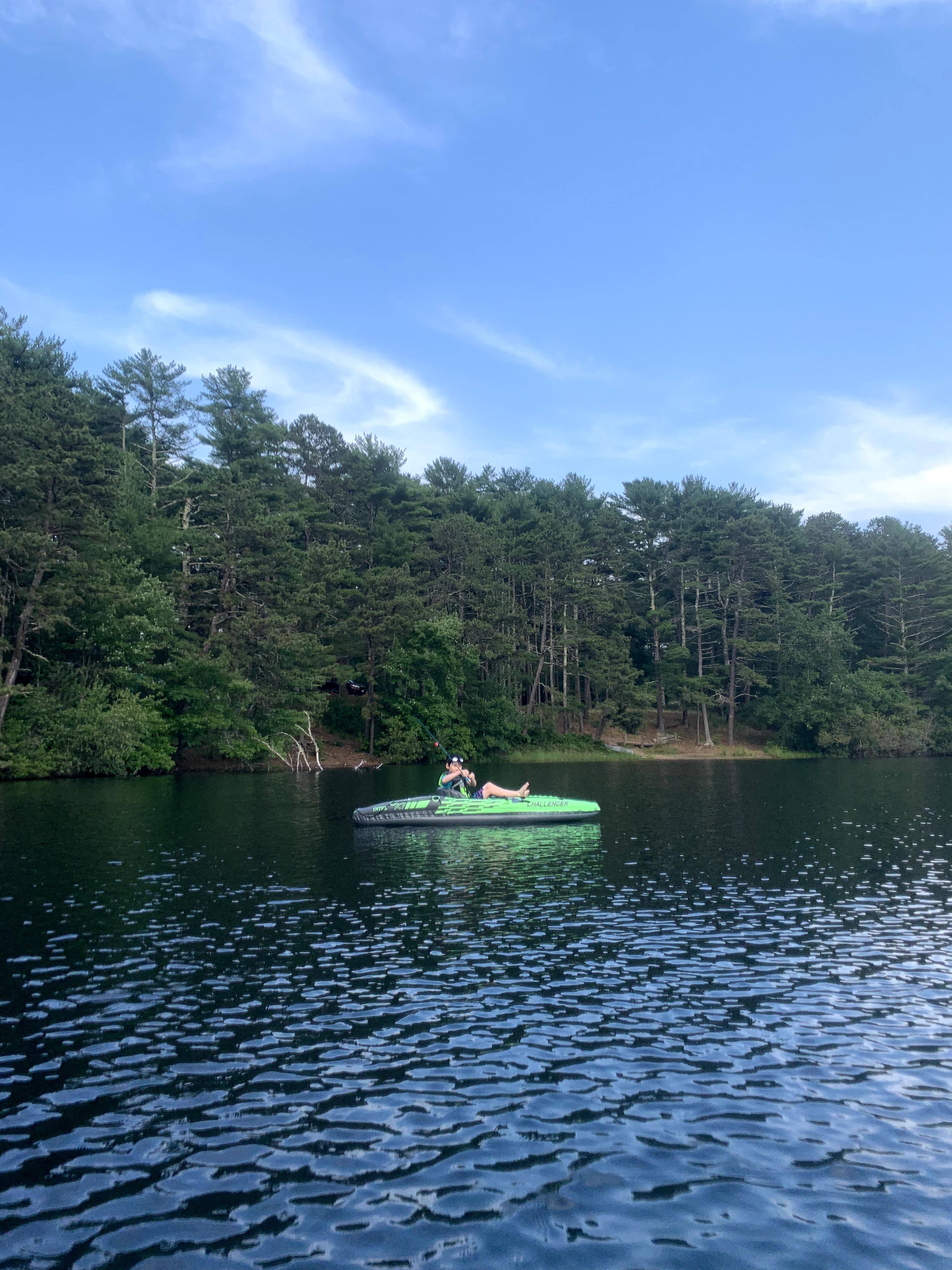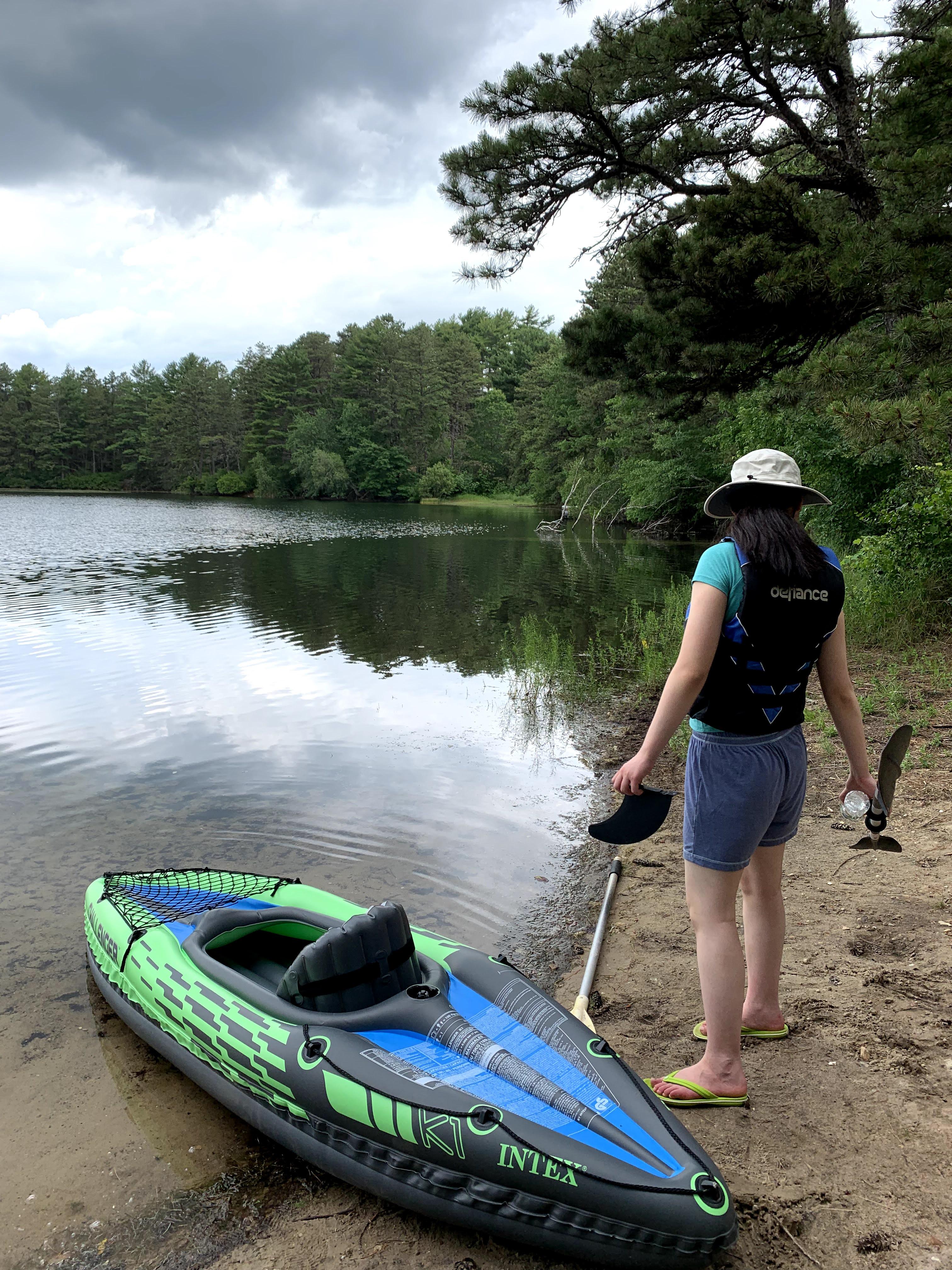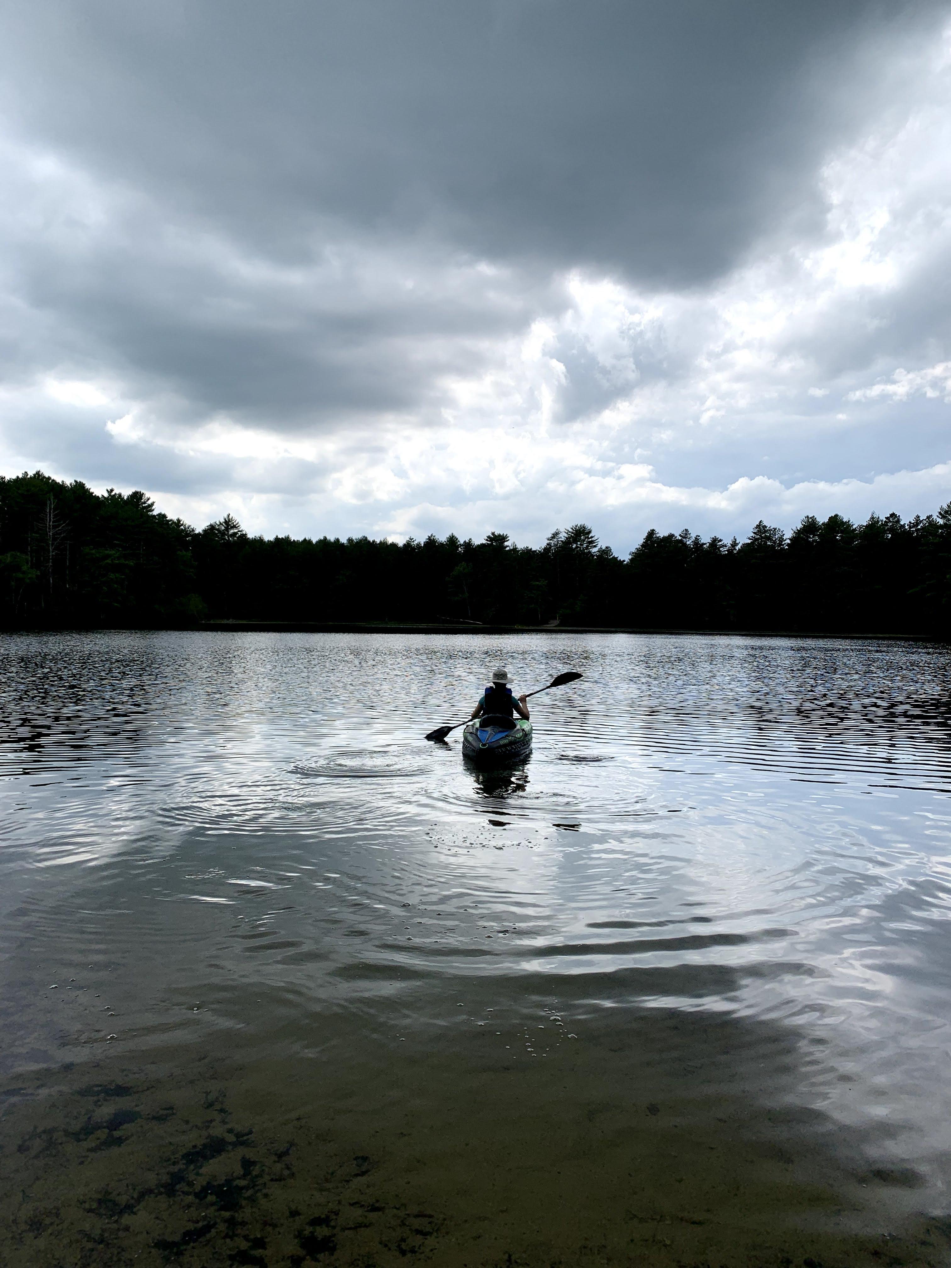 아들아이는 라이프 재킷을 입고 호수 이쪽 끝에서 저쪽 끝까지 가로질러 수영을 했다. 그리고 나는 카약을 타고 아이를 뒤따라 다녔다. 이번에 처음으로 횡단을 하는 것이라 중간에 가다 쉬고 가다 쉬기를 반복하였지만 어쨌든 해내었다. 호수 한가운데서 둥둥 떠다니는 느낌이 그렇게 좋은가보다.