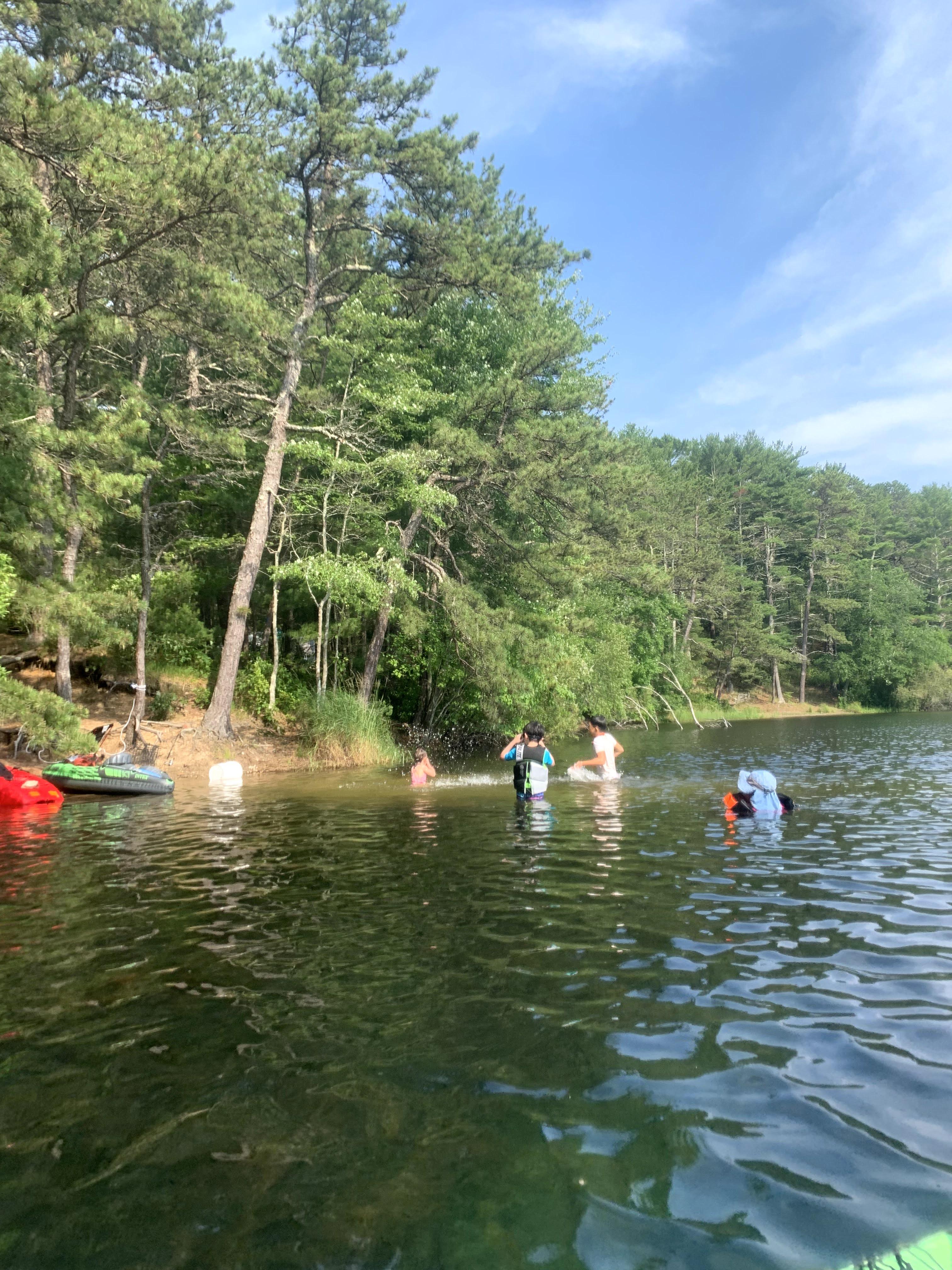 Marina는 구소련 연방인 벨라루스에서 자라다 어릴 적 미국으로 이민을 왔다. 그 당시 소련에서는 긴 여름 방학이 되면 아이들은 집단으로 숲 속에서 캠핑을 하였다고 한다. 아마도 부모가 일을 해야 했기 때문에 국가 차원에서 아이들을 관리하였던 것 같다. Marina는 어릴 적 그 기억이 너무 좋았기 때문에 자신의 아이들에게도 같은 경험을 시키고자 매해 여름 방학이면 거의 한 달 동안 캠핑을 하게 하였다. 그러다 보니 그녀의 아이들(아들 세명과 막내딸)은 인터넷이 안 되는 이곳에서 수영하고 낚시를 하거나 자전거를 타며 여름을 보내왔다. 낚은 물고기를 손질하여 수프를 만들어 먹기도 하고, 걷다가 블루베리를 발견하면 그 자리에서 따먹기도 하였다. 몸 여기저기에 무심하게 생채기를 내기도 하면서 아이들은 그렇게 여름을 보내며 성장해왔다. Marina에 의하면 이 프로젝트에 부모님의 도움이 지대했다고 한다. 아이들의 외조부모님이 캠핑 내내 함께 머무르시며 직장 때문에 주중에는 함께 할 수 없는 부모를 대신하여 손주들을 돌보시고 자연 안에서 살아가는 방법을 가르쳐주셨다. 아이들은 이 기간 중에 친구들을 캠핑장으로 초대하여 같이 놀기도 하고, 보스턴 시내의 박물관에 당일로 놀러 갔다 오기도 한다. J 언니는 Marina의 캠핑 경험담을 듣고는 너무 멋진 아이디어라 생각하여 몇 년 전부터 Marina를 따라서 캠핑을 해왔다. 그리고 나 역시 이들을 따라 단기 캠핑족으로 합류하게 되었다.