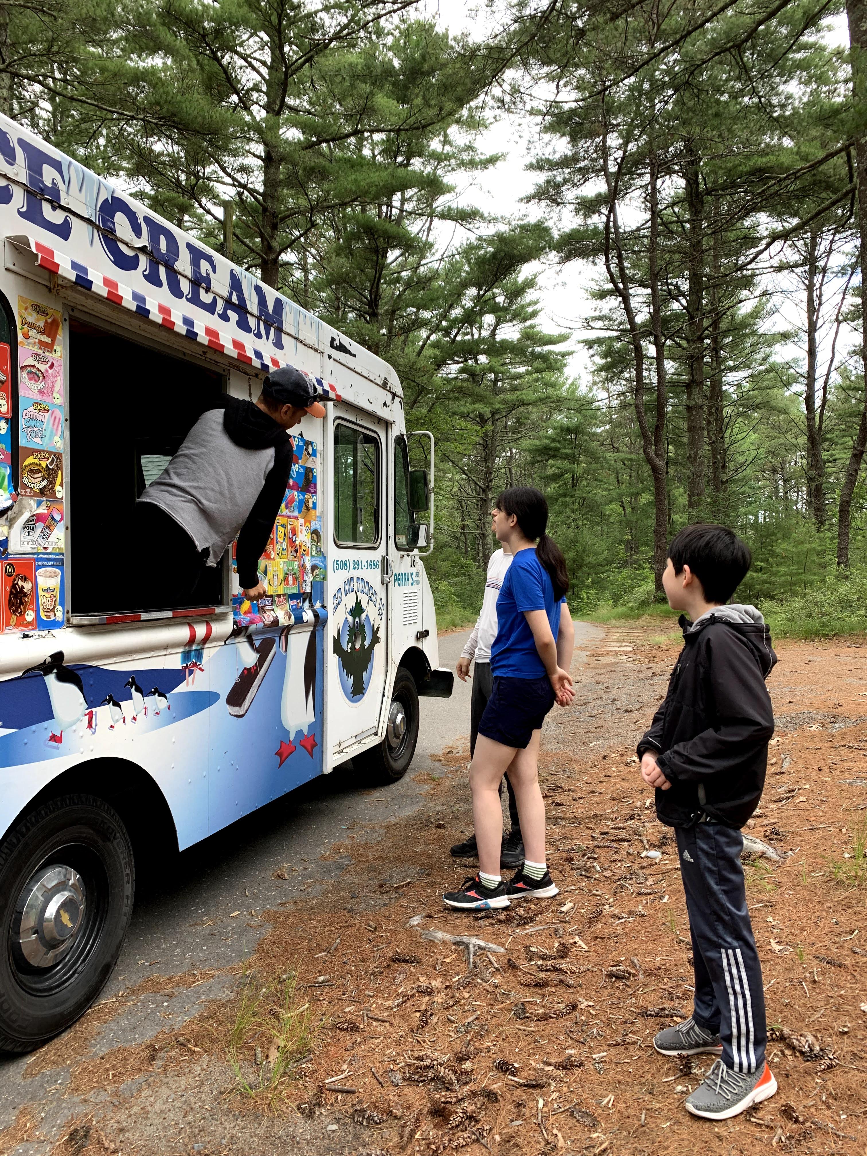 아빠와 집으로 돌아가기 전, 딸아이가 자전거를 타다 다친 것 때문에 의기소침해 있었는데 마침 캠핑장을 돌고 있는 아이스크림 트럭 소리가 들리길래 얼른 세워서 아이들에게 아이스크림을 사주었다. 평소에는 거들떠보지도 않았던 아이스크림 트럭이었는데 이번 등장으로 어찌나 고맙던지. 덕분에 딸아이는 기분이 좀 풀린 듯했다.