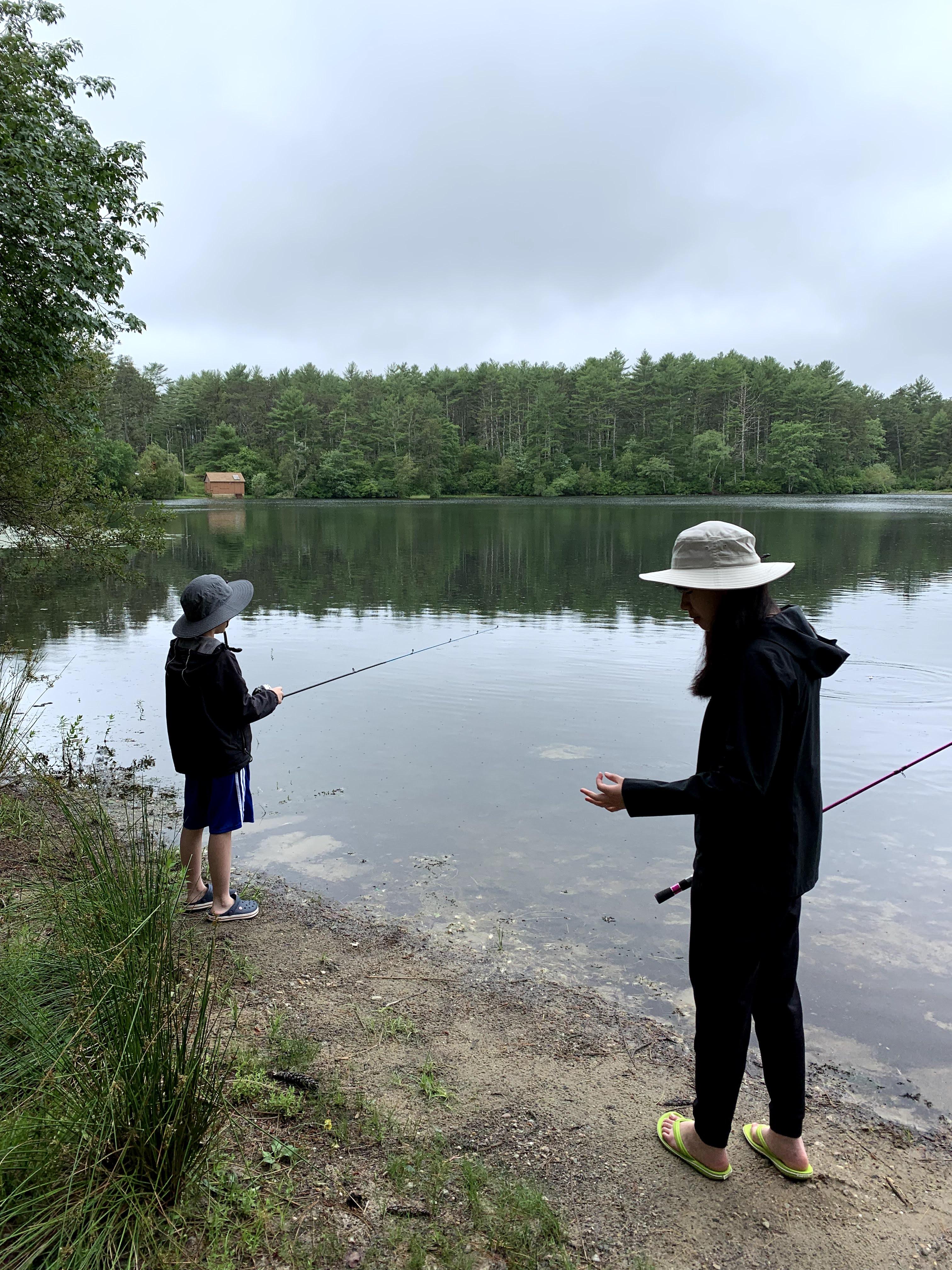 아들내미는 낚시를 좋아한다. 이 호숫가에는 많은 물고기들이 사는 데다 초보자의 낚시 바늘에도 쉽게 걸려드니, 어설픈 낚시꾼인 우리 아들에게는 아주 안성맞춤인 곳이다. 여태까지 우리가 잡아 본 물고기는 sunfish라고 불리는 어른 손바닥만 한 납작 물고기이다. 여기서 가장 흔한 물고기이다. 이전부터 아들이 잡고 싶었던 물고기는 배스였는데, 이번에 배스를 잡으면 꼭 요리해 먹자고 했건만… 안타깝지만 훗날을 기약하기로 했다.