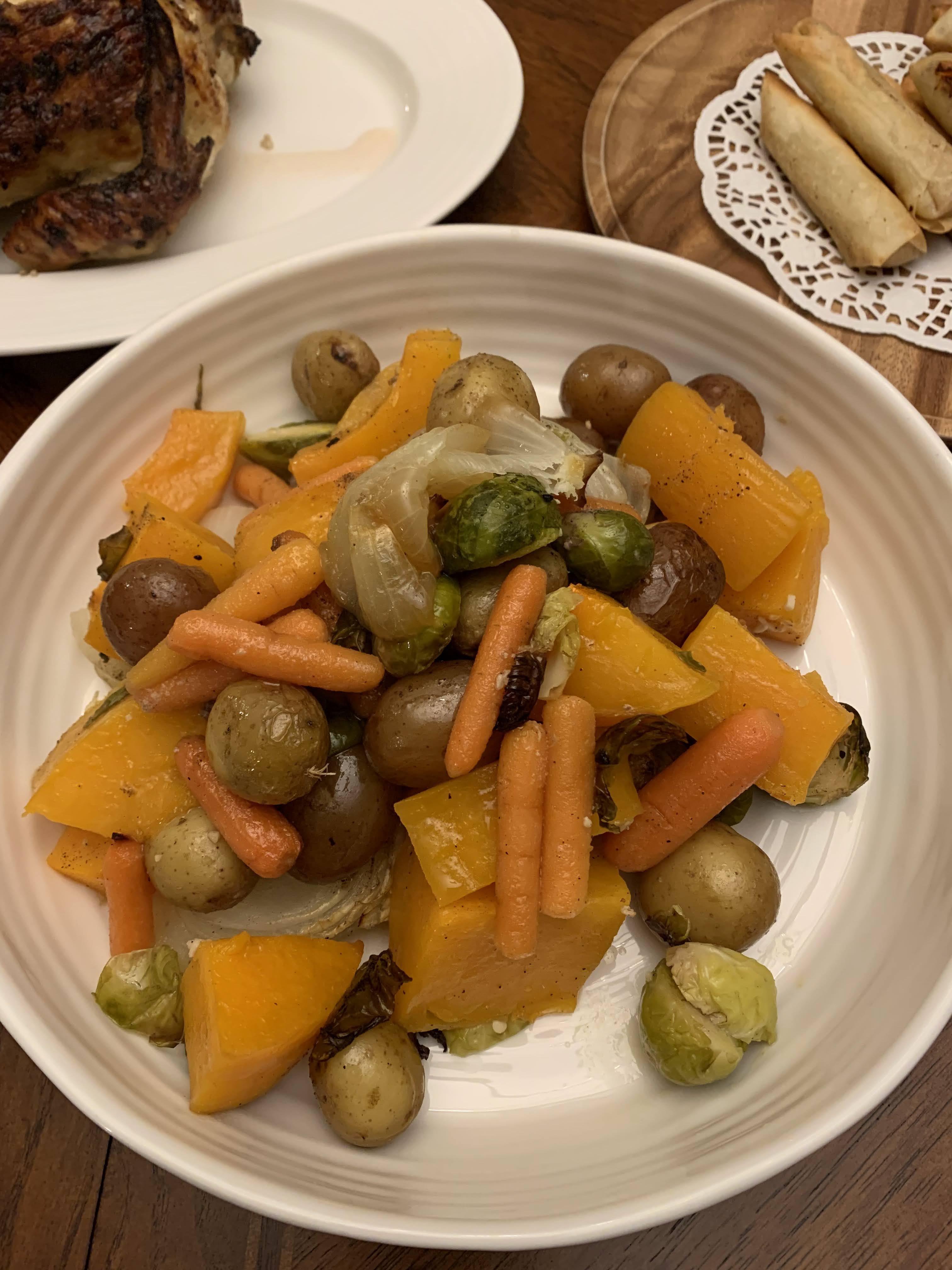 통닭과 함께 오븐에 들어갔다 나온 각종 야채들.