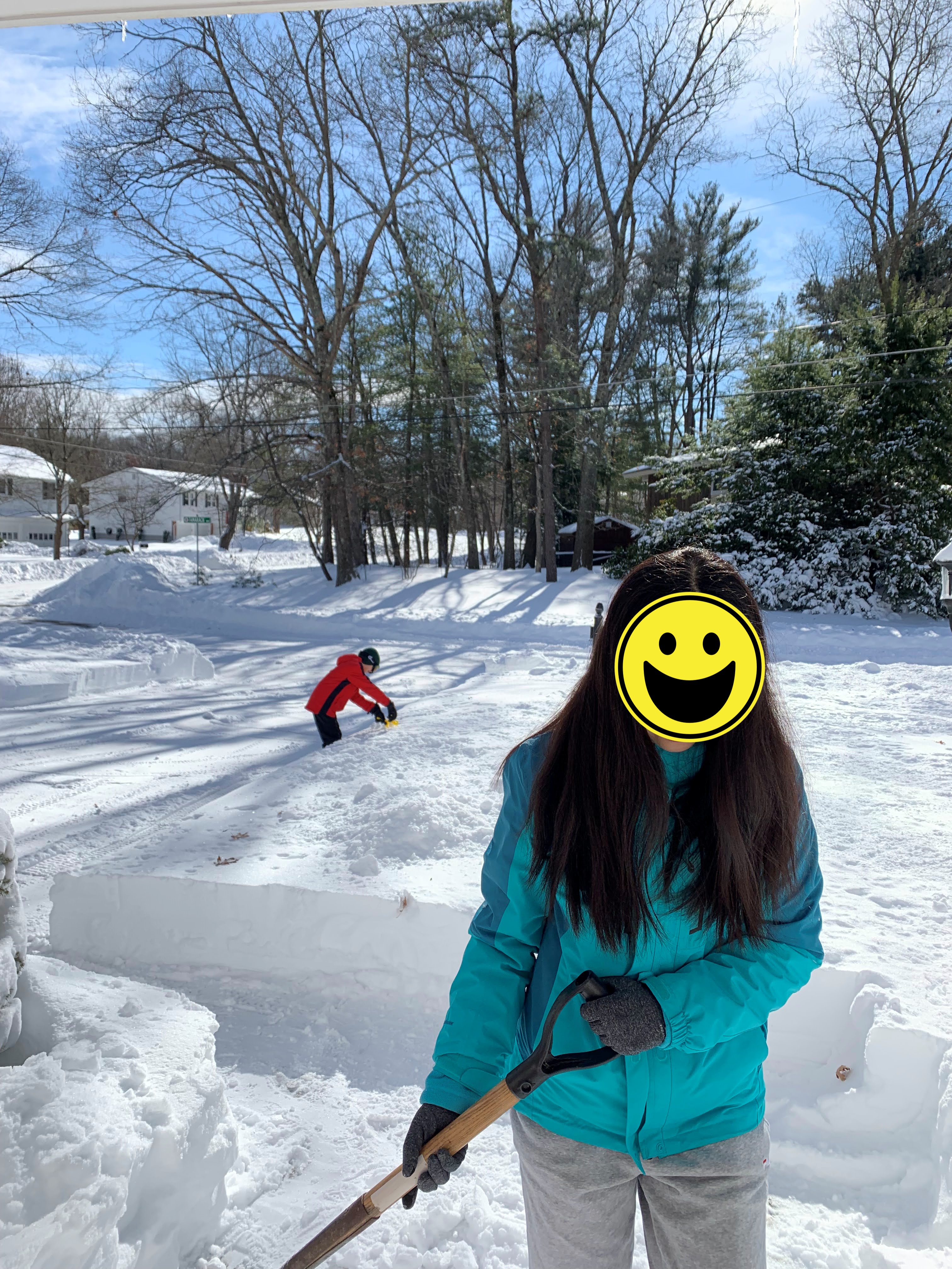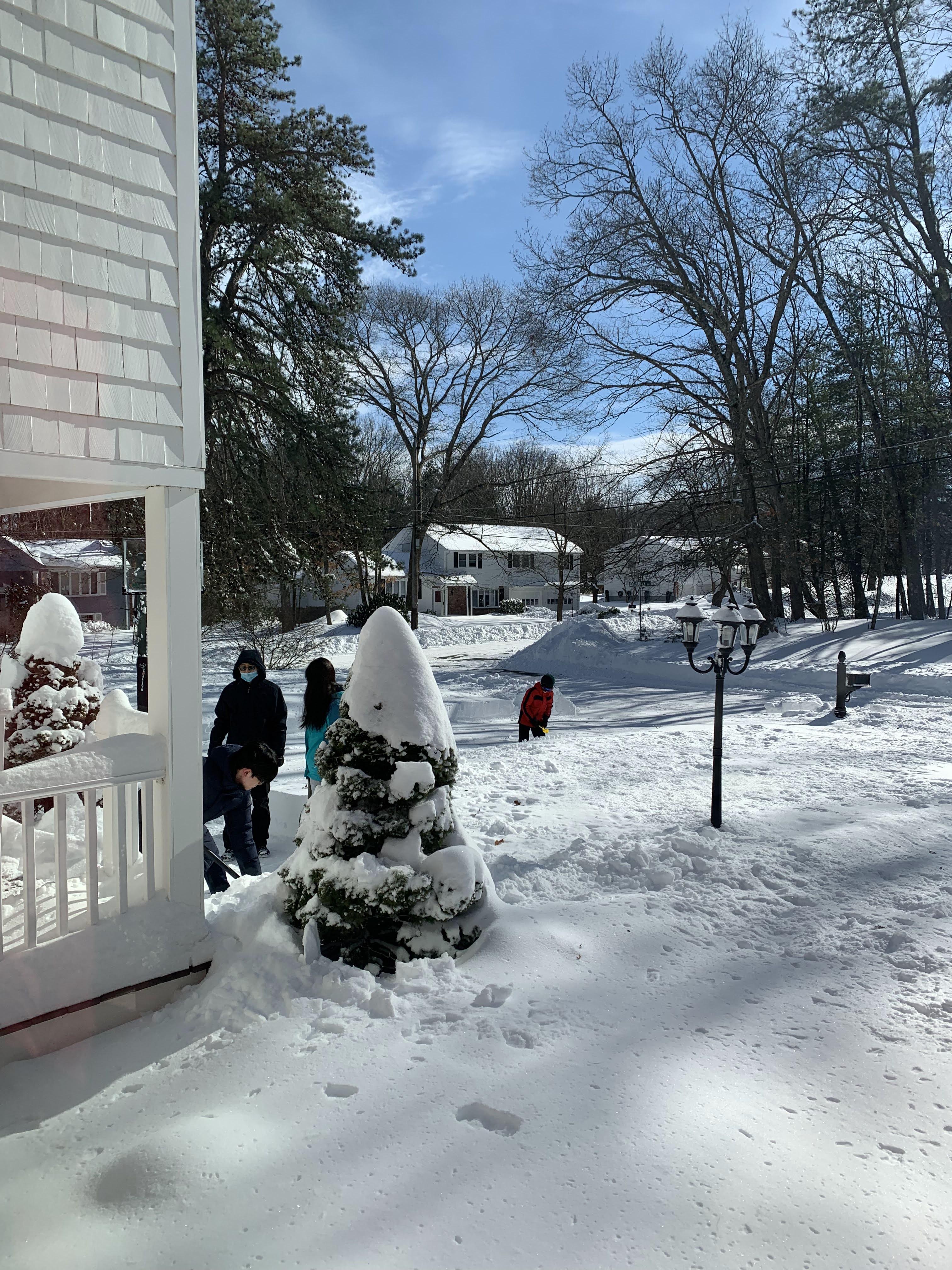 낮에 아빠와 아이들은 나가서 눈을 치웠다.
