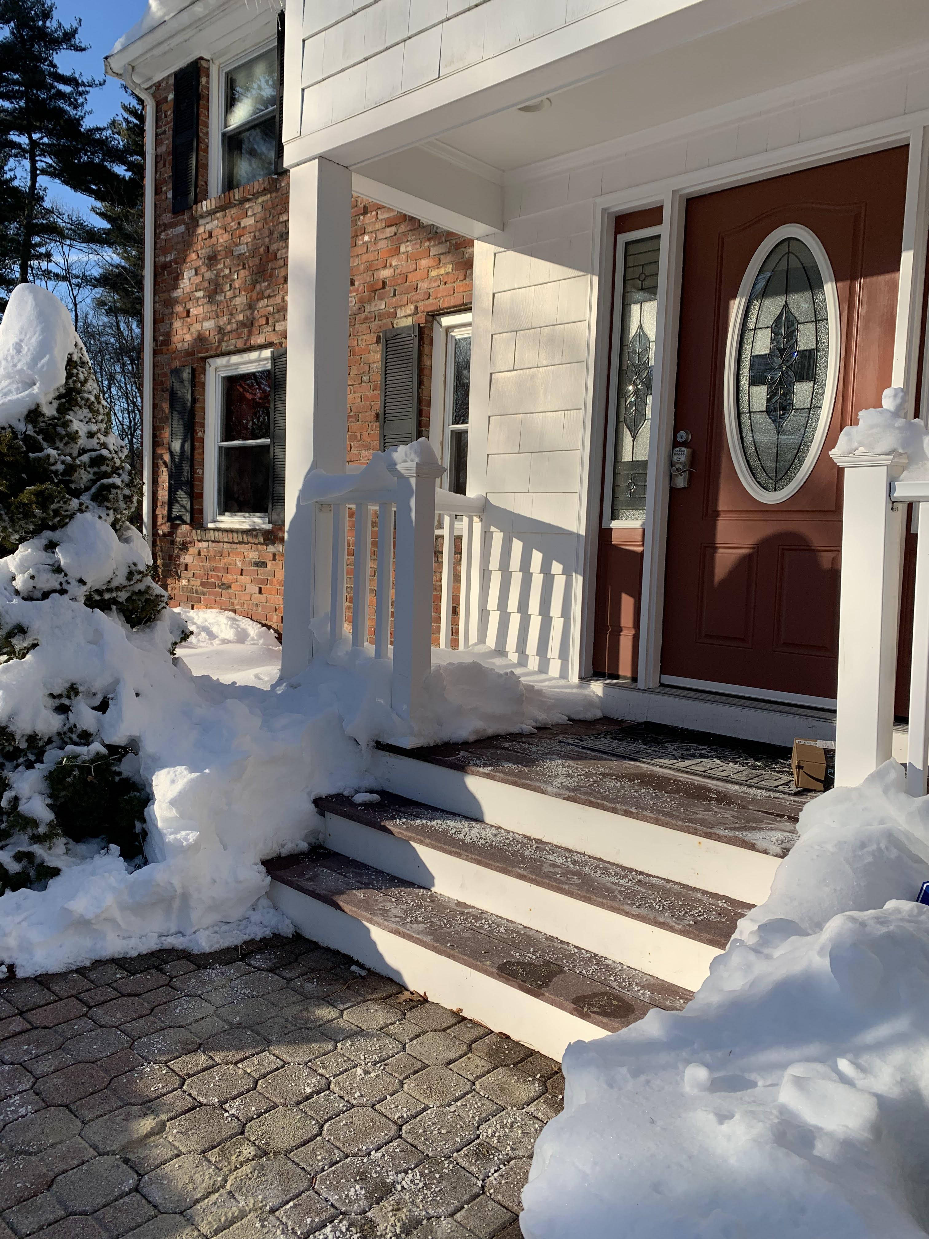 깨끗하게 치워진 드라이브 웨이와 현관 모습.