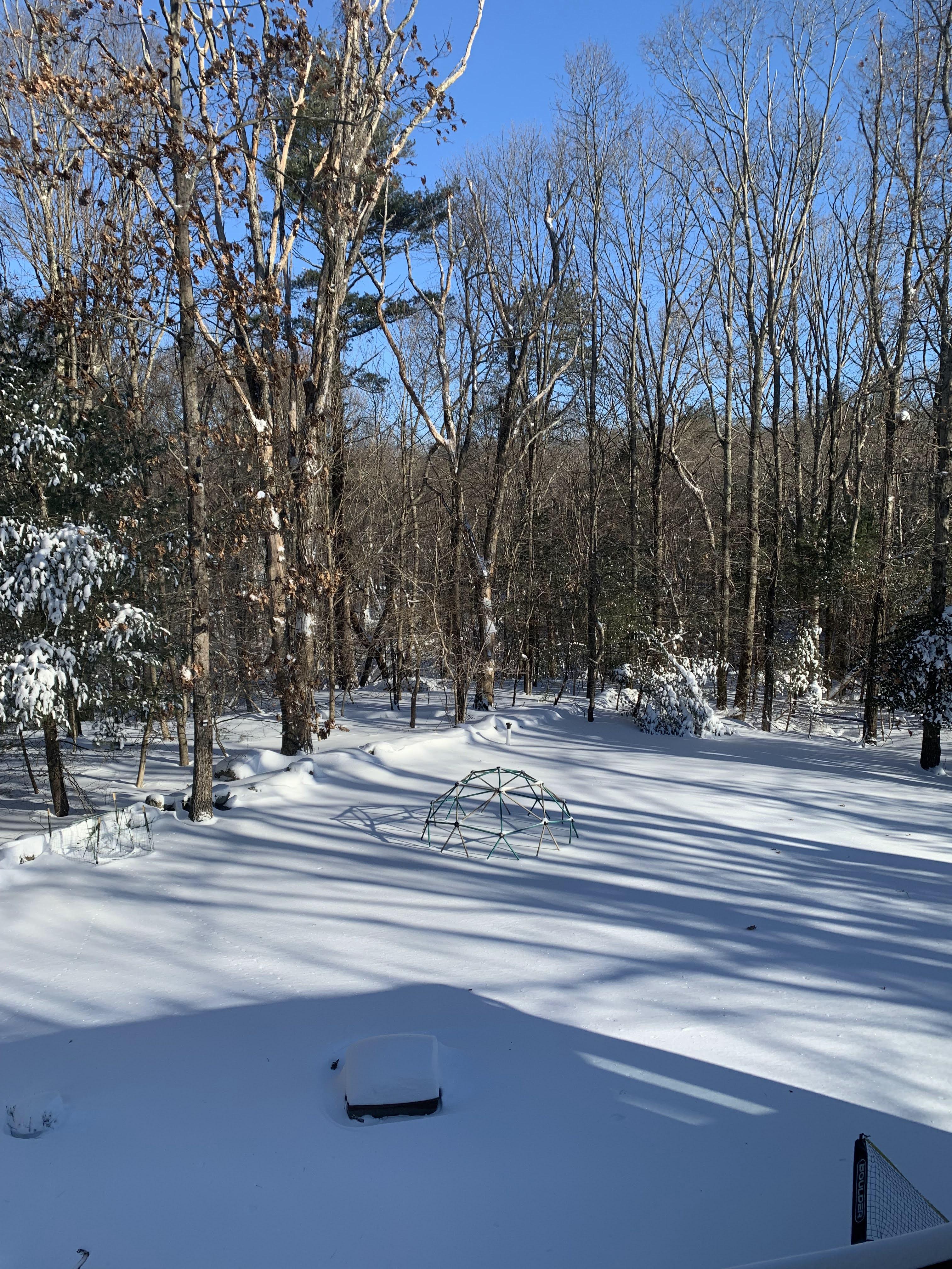 눈폭풍이 지나간 아침에 내려다본 우리 집 뒷마당.