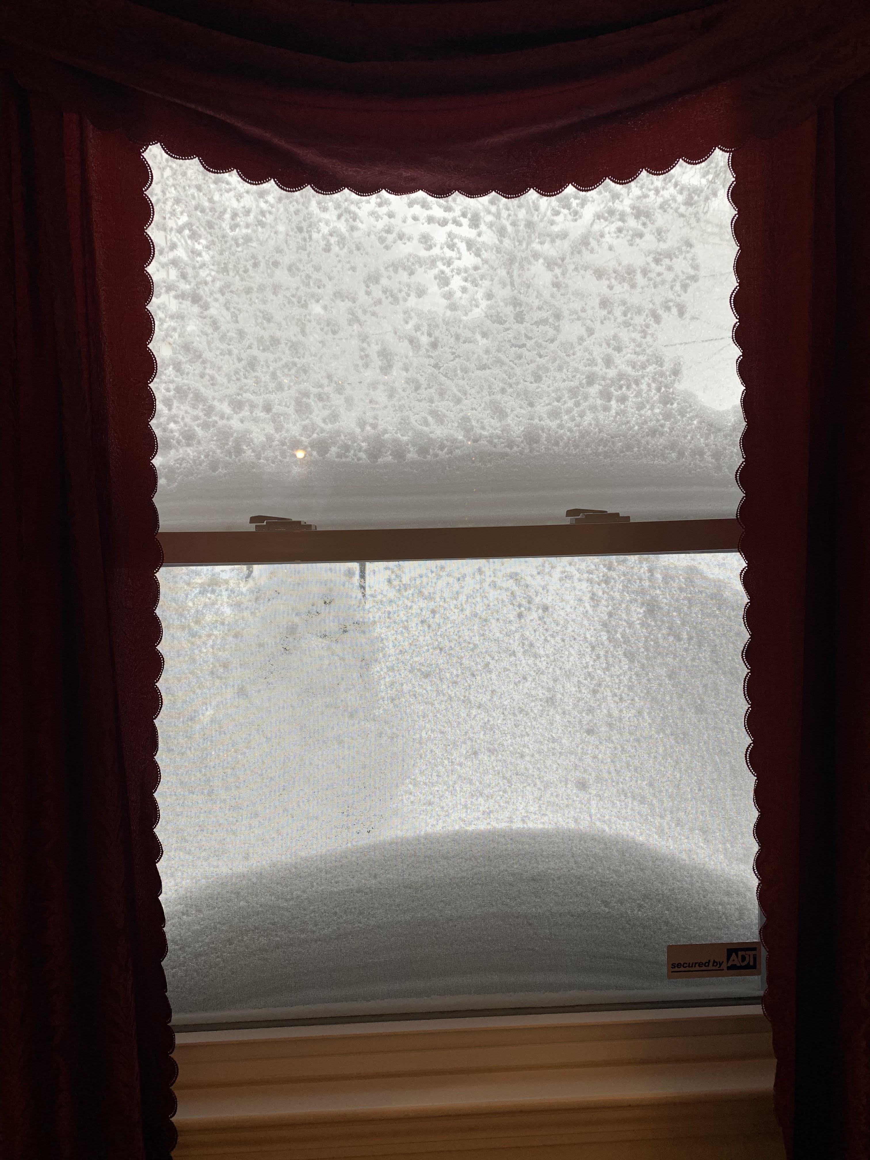 쌓인 눈 때문에 창밖이 안 보인다.