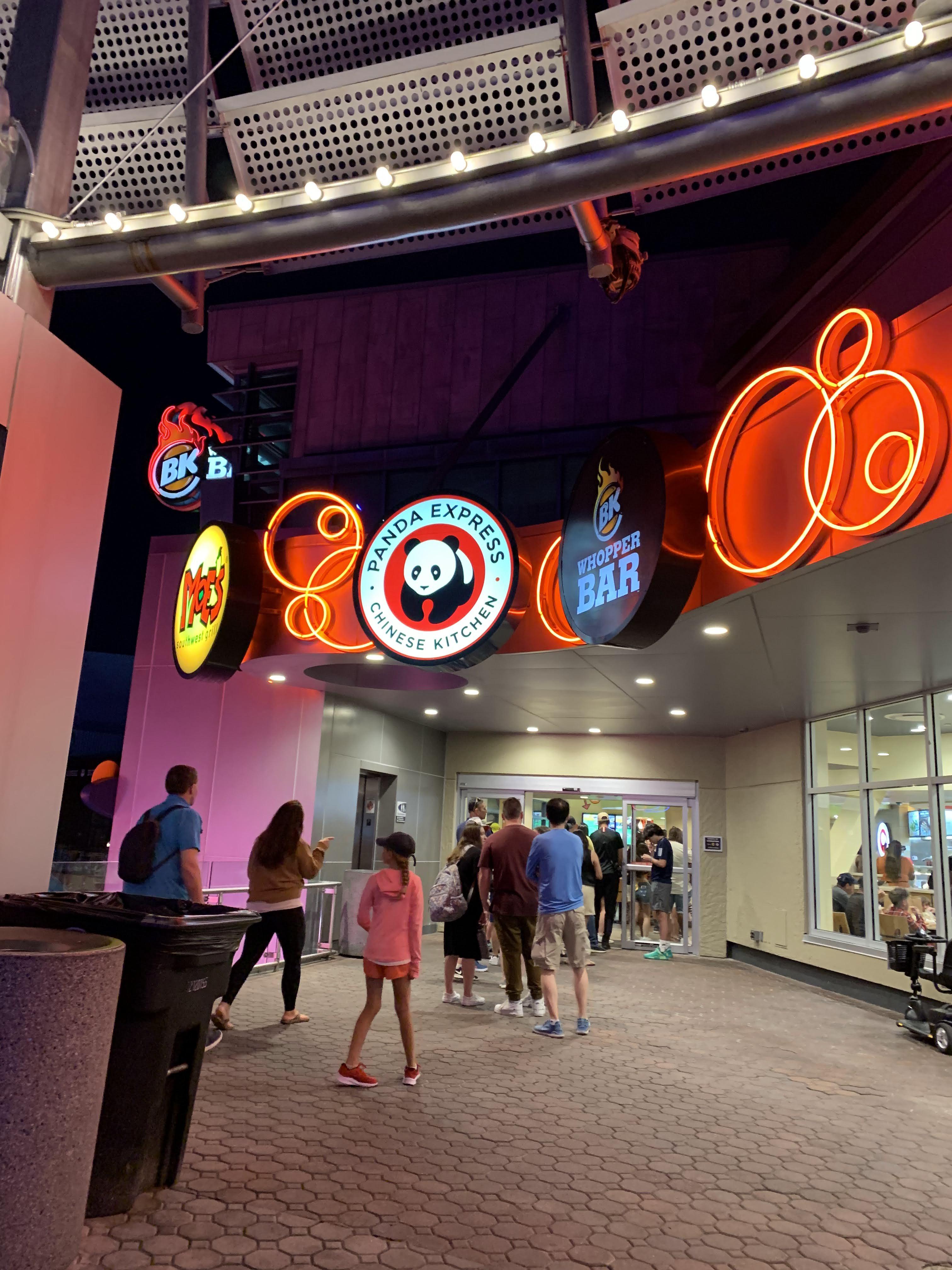 폐장 시간이 거의 다 되어서 우리는 밖으로 나와 유니버설 올랜도 입구에 위치한 시티워크에서 저녁을 먹기로 하였다. 시티워크는 새벽 늦게까지 유흥을 즐길 수 있는 거리인데 유니버설에서 운영하는 곳이다. 원래는 유명 시푸드 음식점에서 식사를 하고 싶었지만 사람들이 너무 많은 데다 피곤하기도 하여 팬다 익스프레스에서 음식을 테이크 아웃해서 호텔방에서 먹었다. 보스턴에서 싼 맛에 자주 사 먹던 팬다 익스프레스를 여기와서도 먹게 되다니.. 그래도 시장이 반찬이라고, 유명 레스토랑 음식 부럽지 않게 아주 맛나게 잘 먹었다.