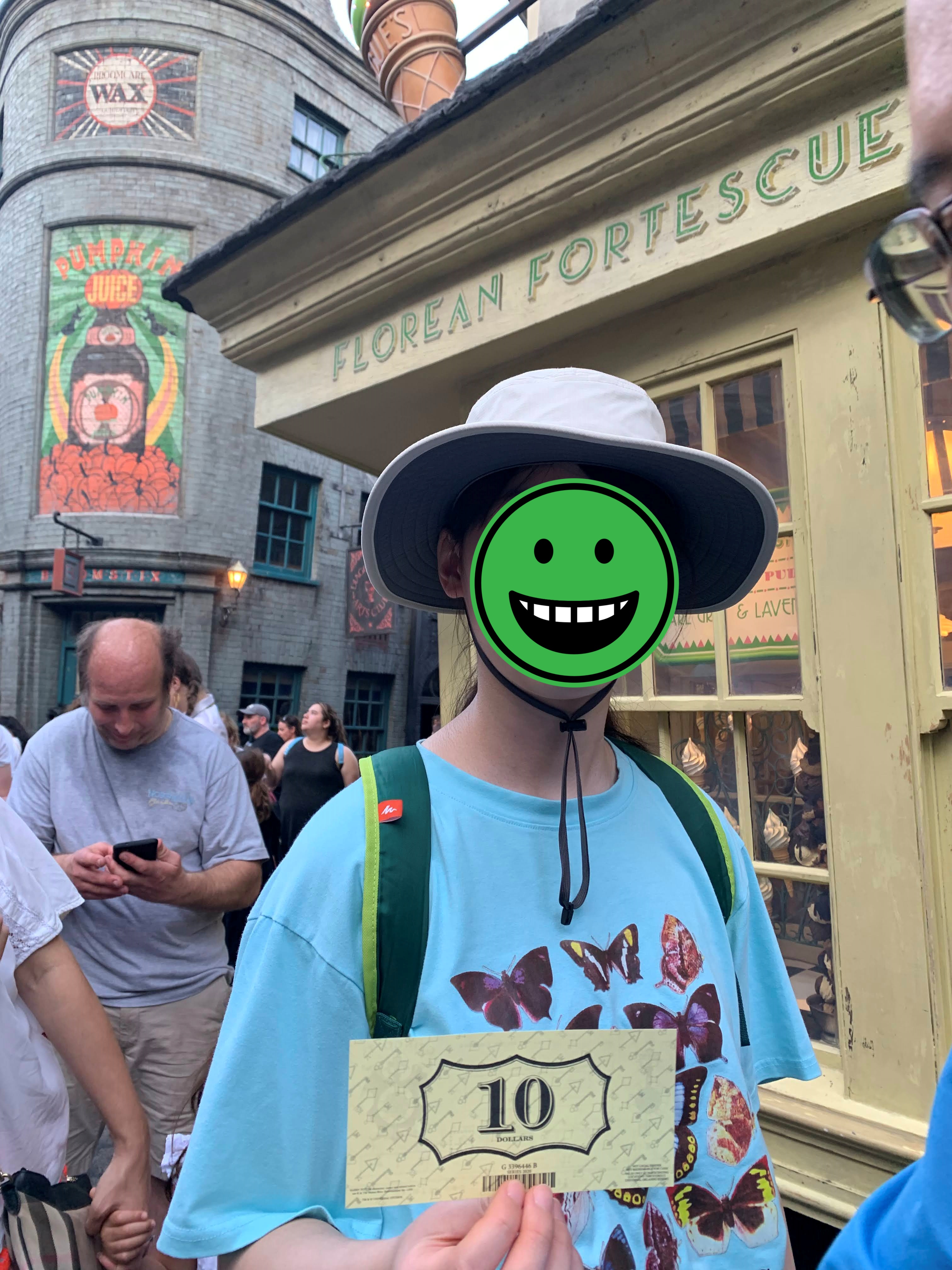 우리는 그린고트 은행에 들러 마법사 돈으로 환전을 하고 그 돈으로 아이스크림을 샀다. 건물 사이의 계단에 걸터앉아 아이스크림을 먹으며 다이애건 앨리의 거리를 내려다보는데 저녁 시간인데도 사람들이 엄청 많았다. 다들 우리와 똑같은 심정으로 집에서 뛰쳐나왔겠거니 싶었다. 마스크를 쓰지 않은 수많은 사람들이 몰려있는 모습을 보니 살짝 겁이 나기도 했다. 내일과 모레, 잘 해낼 수 있을까 싶기도 했고 말이다.