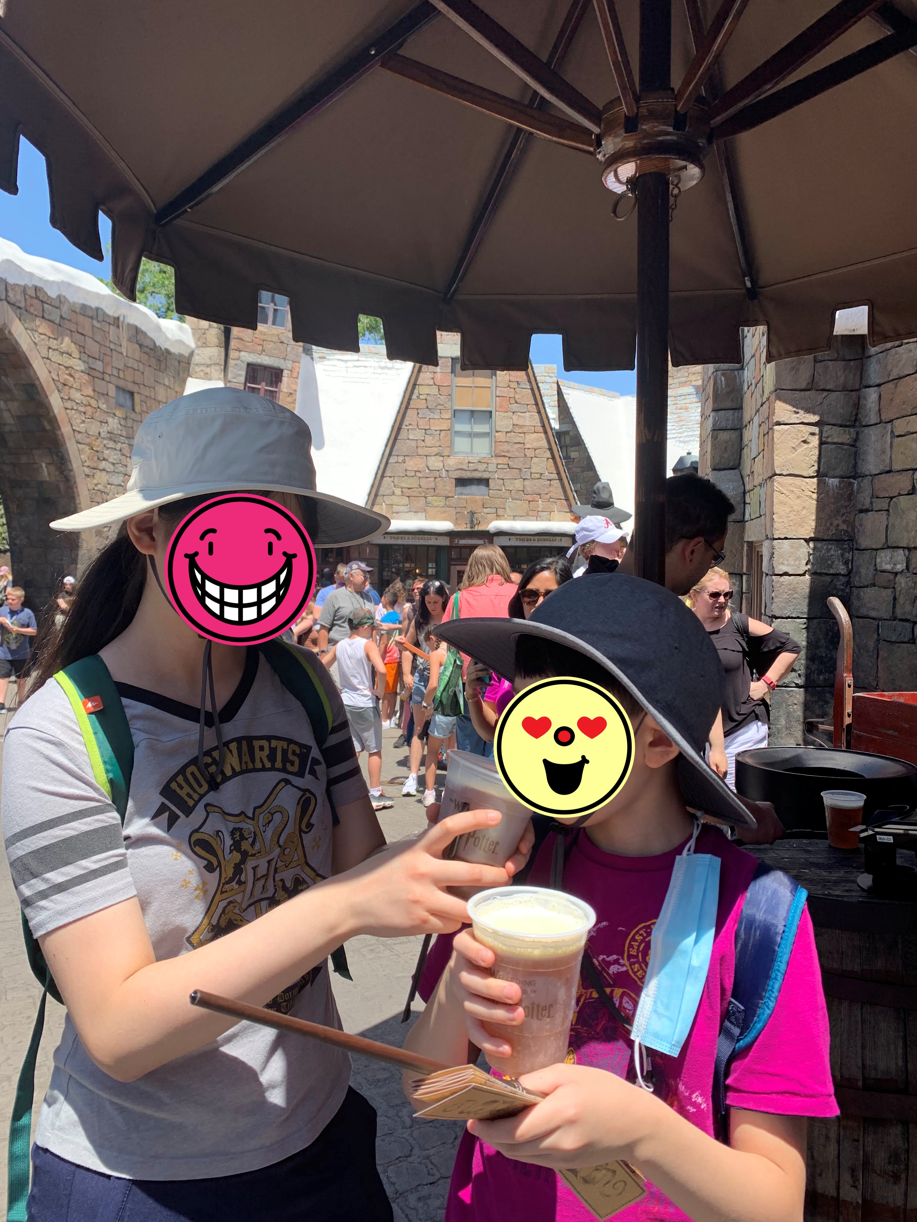 해리포터와 친구들이 호그스미드에서 마시던 버터비어를 맛보았다. 스카치 캔디 맛이라고 해야하나? 여튼 묘했다. 딸아이는 슬러시로 시켰는데 무더운 여름에는 슬러시로 먹는 게 낫겠다 싶었다.