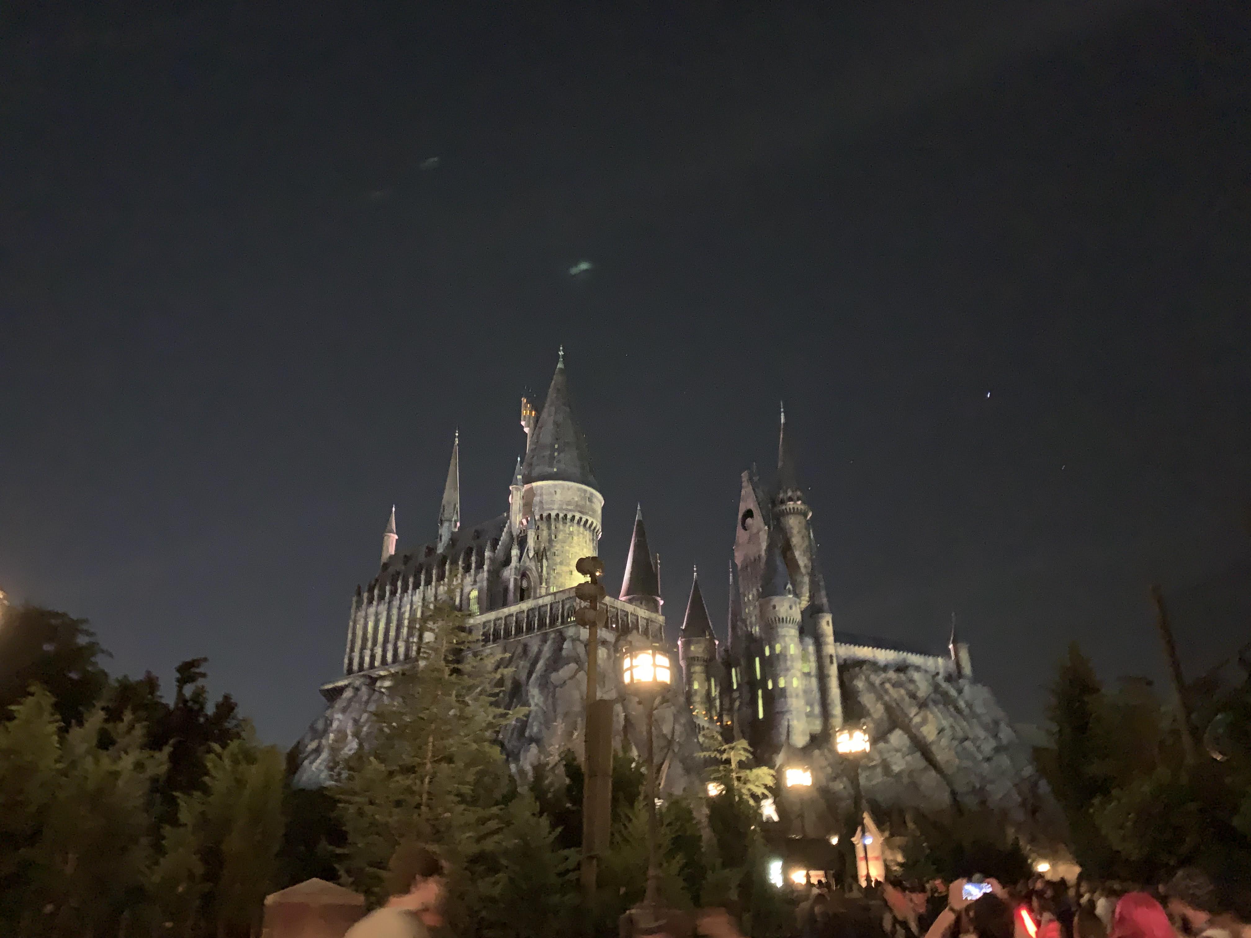 기차를 타고 우리는 호그스미드 역에 도착하였다. 그곳에는 호그와트 성이 위풍당당하게 서 있었다. 머글의 세계에서 이제 마법의 세계로 넘어온 것이었다. 운이 좋았던지 우리가 도착하자마자 호그와트 성을 배경으로 화려한 라이트 쇼가 펼쳐졌다. 사실 라이트 쇼에 대한 정보를 전혀 알지 못하고 있던 터라 우리에게는 환영 깜짝쇼와 같았다. 마침 우리가 서있던 자리가 명당자리였고 멋진 라이트 쇼와 불꽃놀이를 온전히 즐길 수 있었다.