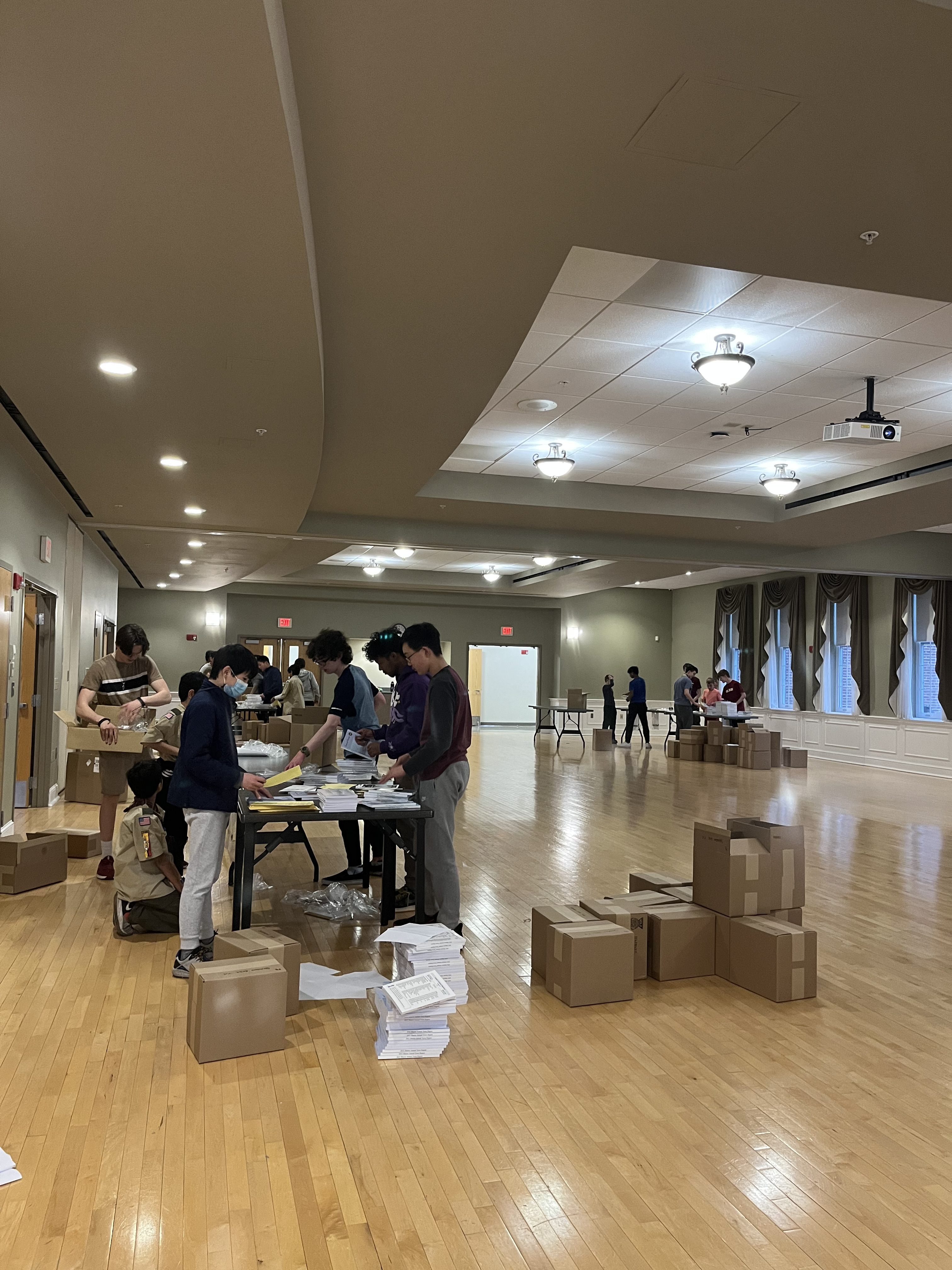 4월 초에 타운 레크리에이션 센터에서 미리 모여 책자를 분류하고 배분하는 작업을 하였다.