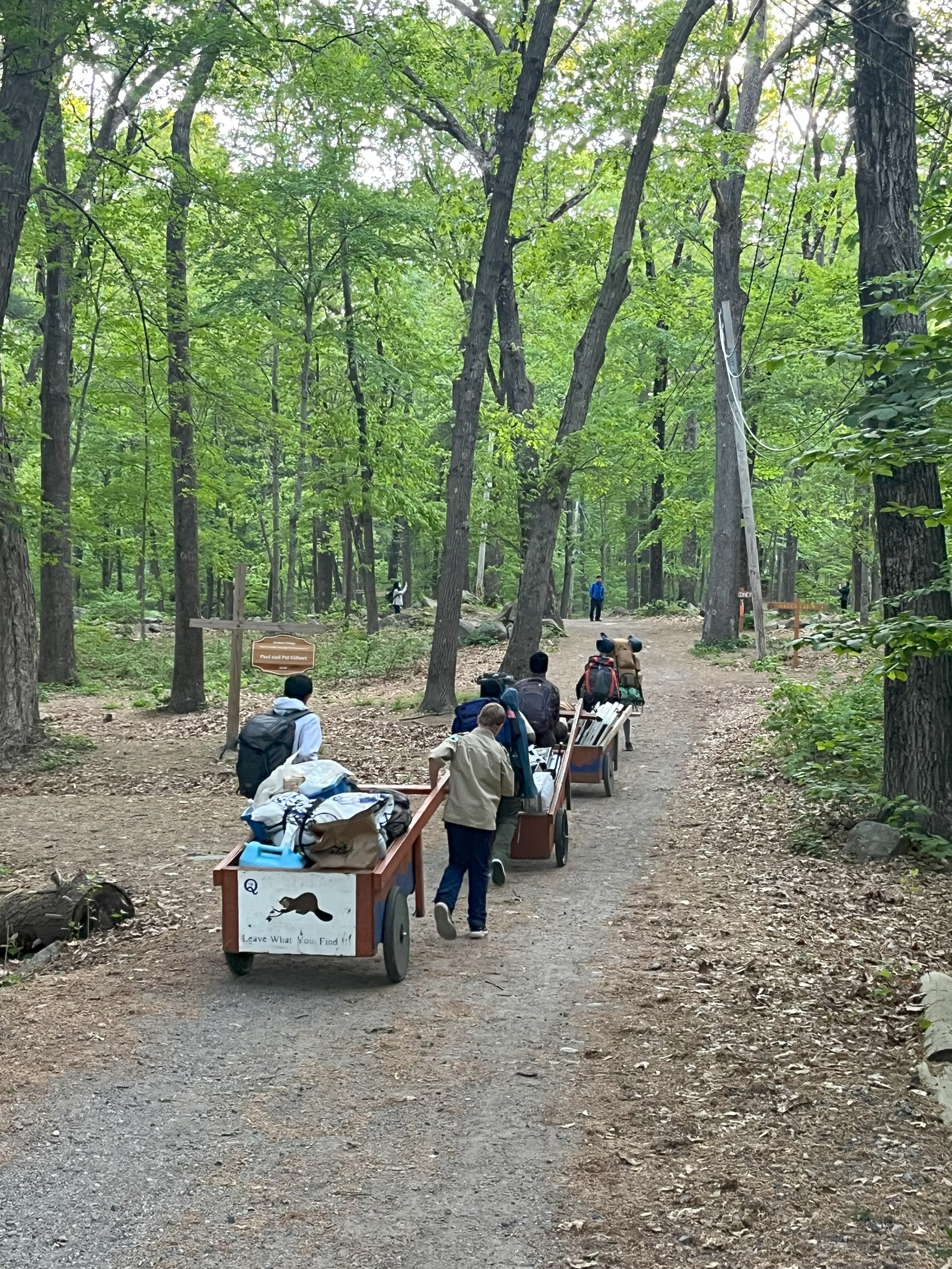보이스카웃 아이들은 스스로 모든 일을 하게 되어 있다. 커다란 백팩을 메고 수레를 끌며 서로 도우면서 가는 뒷모습이 얼마나 든든하던지. 집안의 막둥이로서 온 식구의 보살핌에 익숙해 있던 우리 아들내미였기에, 이런 경험을 통한 성장은 특히나 중요할 것이다.